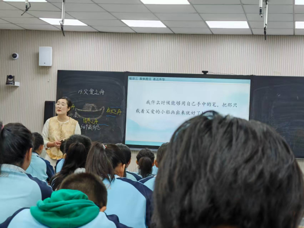 课堂中,李主任以“梦中之舟”为线索,巧妙架构教学。她引导学生紧扣“姑爹的小渔船”这一核心意象,通过层层品读,让学生深刻感悟到这小船不仅是载人渡水的工具,更是父爱与希望的象征。教师执教过程中着力于文本的细节描绘,引导学生在“父亲缝补背影”“庙会买豆腐脑”等平凡场景中,捕捉父爱的无私与坚韧,使课堂情意融融,感人至深。